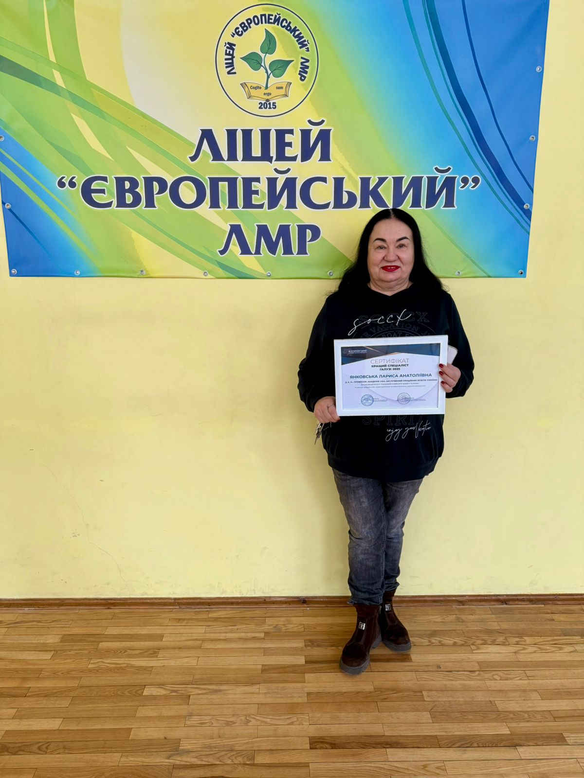 Педагогічний колектив ліцею вітає директорку ліцею "Європейський", доктора економічних наук, професора, Заслуженого працівника освіти України, академіка УАН Ларису ЯНКОВСЬКУ з отриманням Сертифіката «Кращий спеціаліст галузі – 2025»